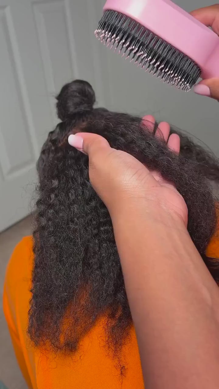 Fini les nœuds qui te donnent envie de tout couper. Grâce à ses picots souples, cette brosse glisse dans tes cheveux, démêlant chaque mèche sans douleur ni tiraillement. Le spray aide à détendre les boucles, rendant le processus ultra facile. Tes cheveux te remercieront, et ton miroir aussi!